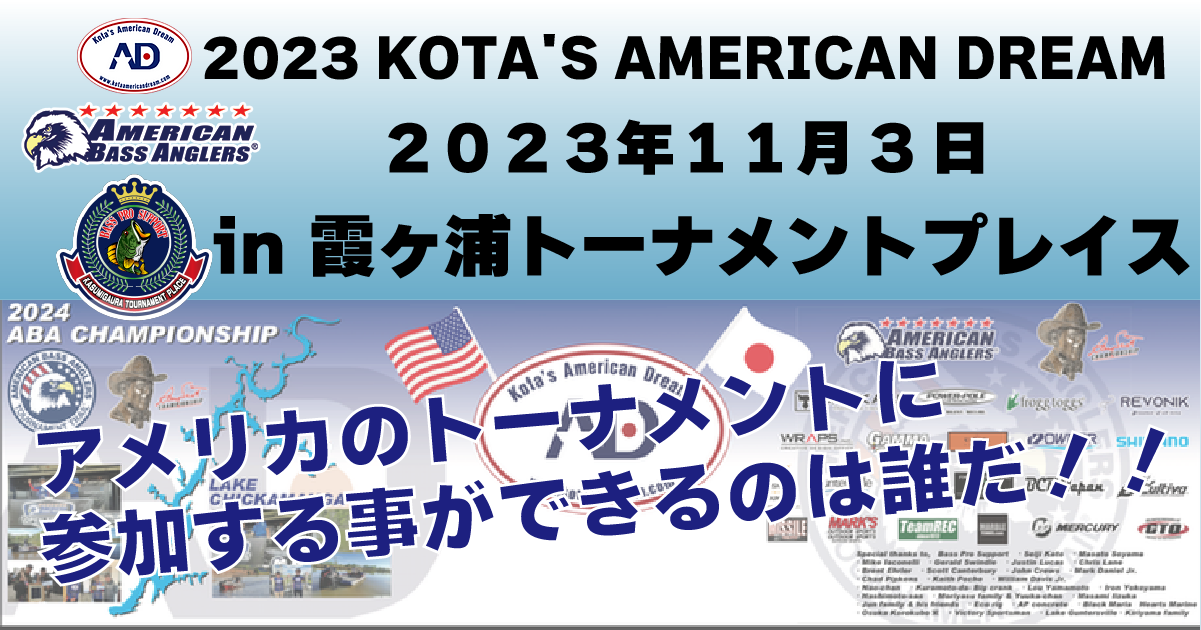 優勝を勝ち取れば無償でアメリカのトーナメントに参加する事ができる!2023 KOTA’S AMERICAN DREAMが2023年11月3日 金曜日(悪天候時の予備日:11月5日 日曜日)に霞ヶ浦トーナメントプレイスで開催されます!!