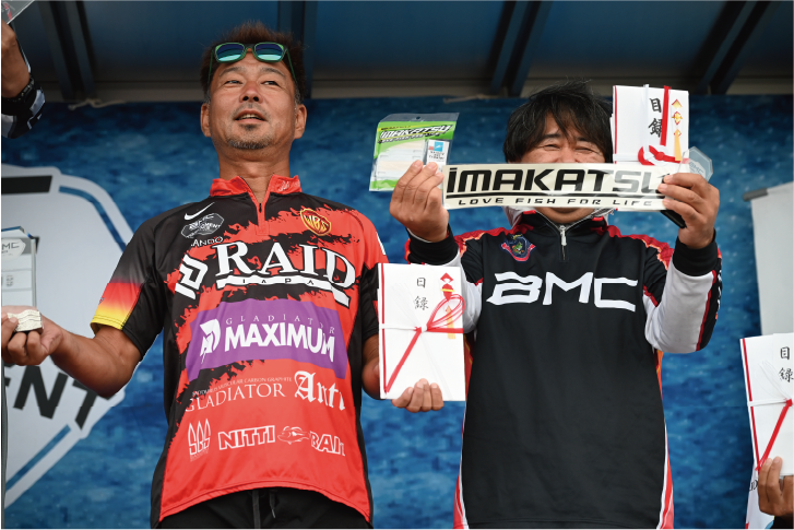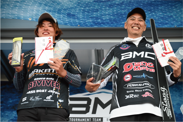 河野プロは流入河川を主戦場に据え、プラクティスから魚がヤル気なく浮いていることを掌握。当日はダルド100とポッパーマウス(いずれもIMAKATSU)を使い分け3,730gを記録し、BMCトーナメント2勝目をマークしました。
