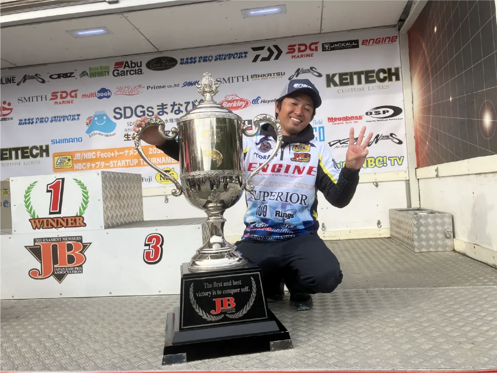 今泉プロはJB TOP50第5戦、バスプロ選手権東日本大会に続く、公式戦3連勝という偉業を達成。喜びの声をお聞きください。